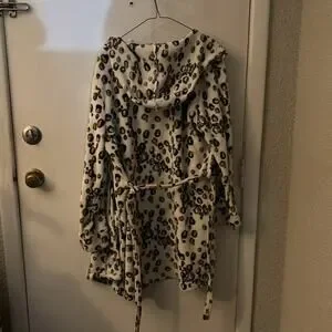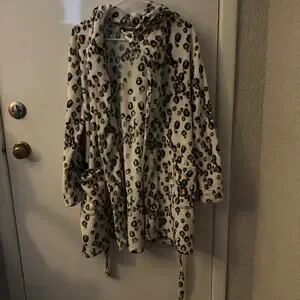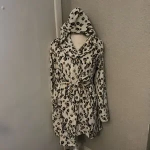 Joe Boxer Hooded Animal Print Robe Tie w/Belt M Sleepwear Cozycore Print College