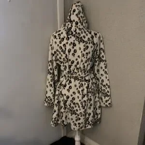 Style: Fluffy hooded animal print bathrobe with tie, Great for animal lovers