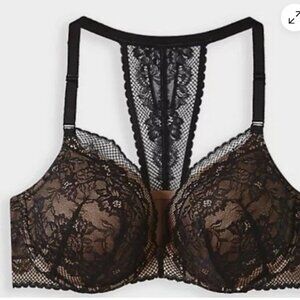 Torrid Lightly Lined Front Close Black Lace T-Shirt Bra.