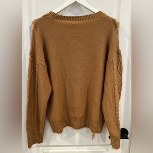 Jodifl Camel Fringe Western Cable Knit Sweater Boho Women’s Size M