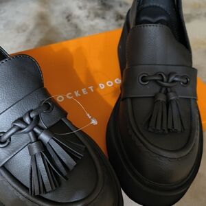 Step up your style with these chic black Rocket Dog platform loafers. Featuring elegant tassels, these shoes offer both comfort and sophistication. Perfect for any occasion.New in box