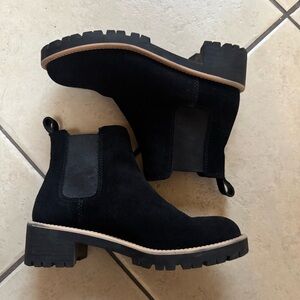 Waterproof Blondo Black Suede Ankle Booties with Tan Sole
