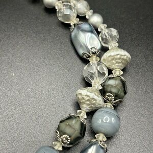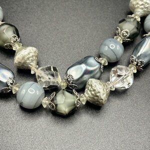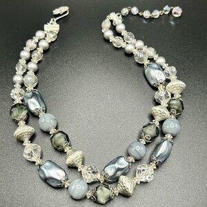 Vintage Vendome double strand necklace #E412 gray silver tone