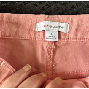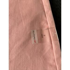 The product is a Liz Claiborne women's denim skirt in size 4, featuring a pink pull-on comfort stretch design that is knee-length. It is made of a blend of polyester and cotton, with a solid pattern and a mid-rise fit. The skirt has a zip closure, is machine washable, and is suitable for occasions such as travel, parties, and casual wear. It also includes features like lightweight fabric, stretch for comfort, and pockets for convenience. The skirt is a versatile piece that can be styled for various seasons and themes.