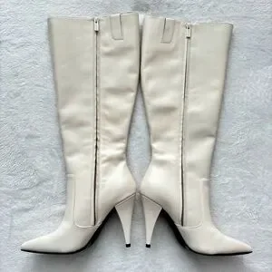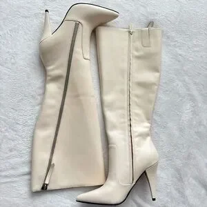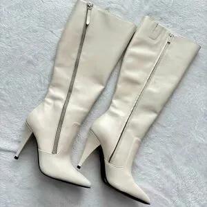 VINCE CAMUTO Alessa Cream Leather Wide Calf Knee High Heeled Boots--NEW--7.5WC