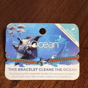 Bracelet is handcrafted on the tropical island of Bali by local artisans. The cord is made from plastic collected by 4ocean captains and crew. It removes 1 pound of trash from oceans, rivers, and coastlines. Supports ocean cleanup, helping protect marine life. Crafted with 100% recycled stainless steel charms for durability and sustainability.