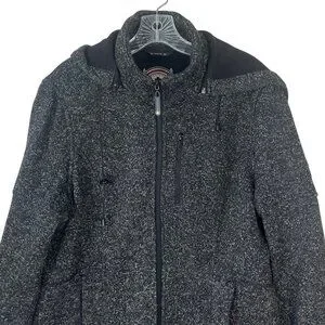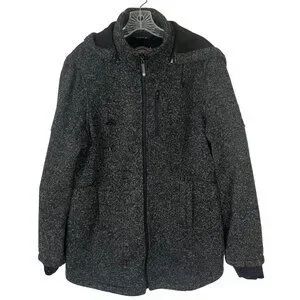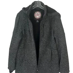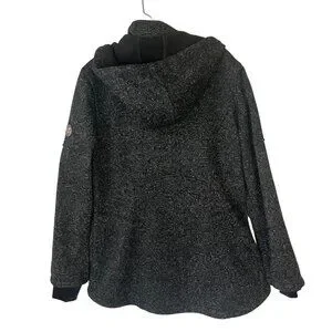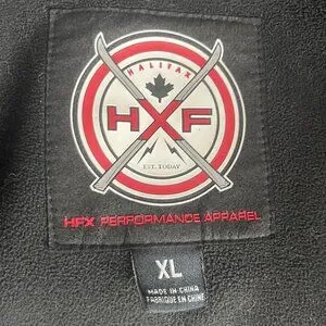 Performance black coat with front zipper and pockets, suitable for women. Made of polyester and spandex, this HFX coat is size XL for a comfortable fit.