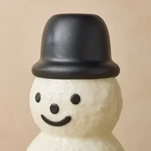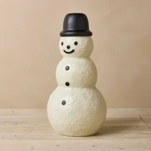 This plastic decor features artwork from decoupage artist John Derian and is designed as a classic white snowman with black detailing and a black top hat. Designed for indoor decorative use, this battery-powered snowman provides warm lighting and has a timer with 6-hour-on and 18-hour-off functions.