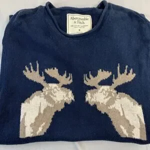 Vintage Abercrombie & Fitch Wool Blend Blue Double Moose Sweater Med