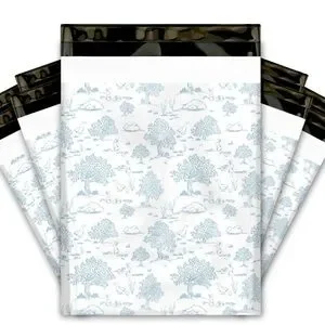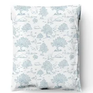 The listing comes with 20 premium, designer blue toile print poly mailer bags.