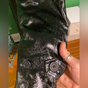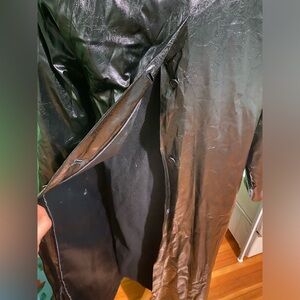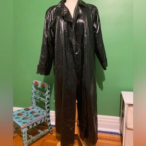 Vintage 80s Bill Blass Shiny Black Maxi Trench Coat With Wool Lining goth japan