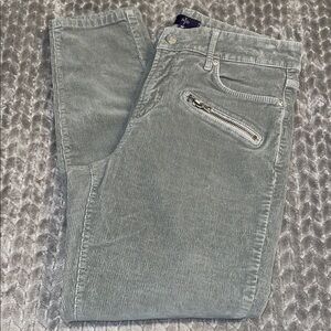 NYDJ Super Skinny Corduroy Pants. Gray/Green. Size 10. Zipper pockets.