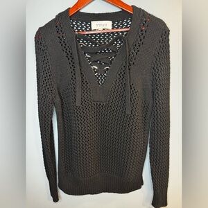 10 Crosby Derek Lam 100% Cotton Black Lace-Up Sweater | Size Medium