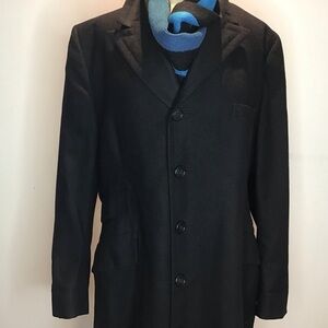 Eagle Clothes Black Wool Four Button Fully Lined MidLength Vintage Notch Collar Overcoat 44 See measurements