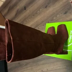 Chic rust suede boots with a sleek design. Perfect for elevating any outfit.