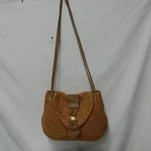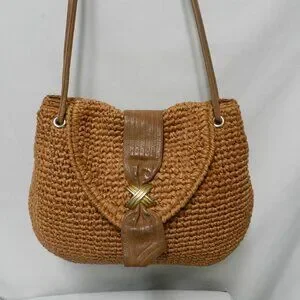 Bally Vintage Straw & Leather shoulder handbag purse made in Italy brown medium