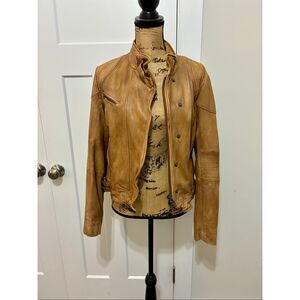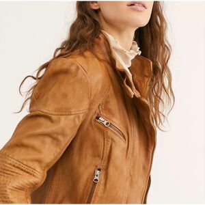 Free People Rugged Leather Jacket Camel Small 100% Lamb Leather