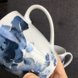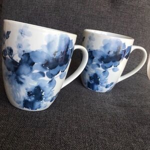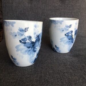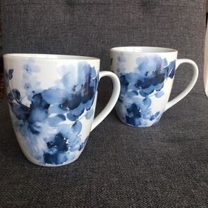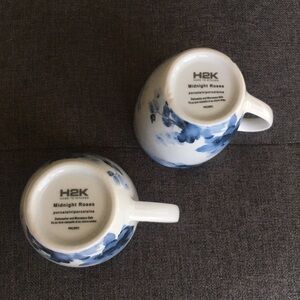 Set/2 “Midnight Roses” Porcelain Coffee Mugs, Blue, White, 12 oz