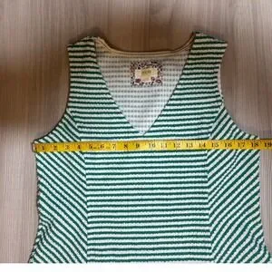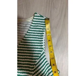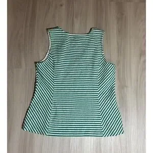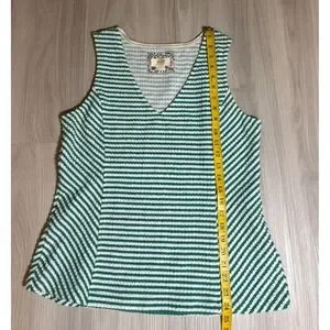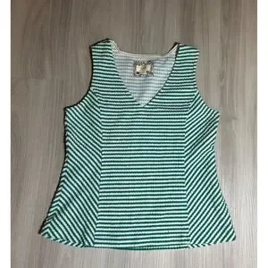 Maeve Tank Top Womens L Green White Striped Peplum V Neck Textured