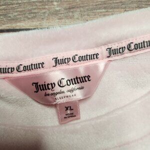 Juicy Couture Pink Rhinestone Velvet Fleece Pajamas. Womens size XL with measurements shown. Excellent pre owned condition does have 2 small spots on the back of each leg as shown. 95% Polyester, 5% Spandex Drawstring