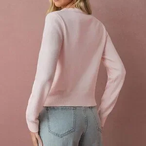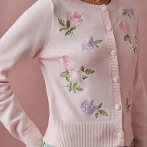 Pink Romantic Women's Floral Embroidered Long Sleeve Knit Cardigan