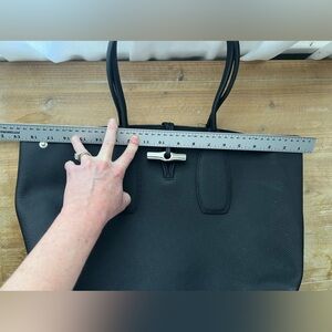 New Longchamp Larger Le Roseau Leather Tote In Black