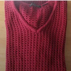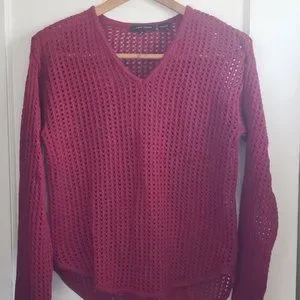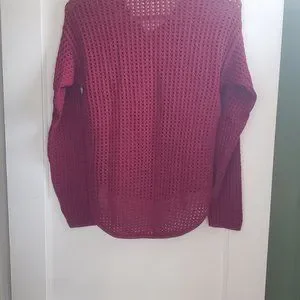Open weave. This fun crochet style is perfect for all seasons. Long sleeved. V-neck. Longer in the back. Smoke free, pet free home.