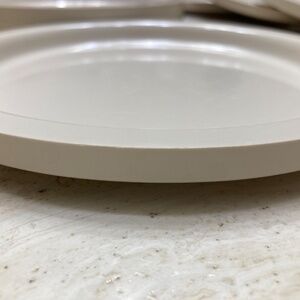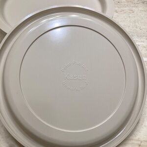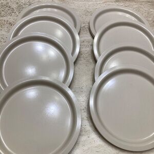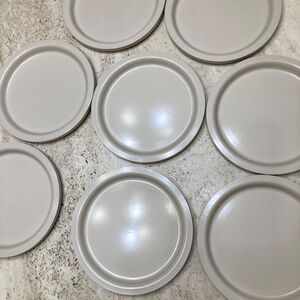 Mid Century Modern Kasen Dishes. Stackable, Cream set of 8 vtg Peter Pan Kasen 8" plates.