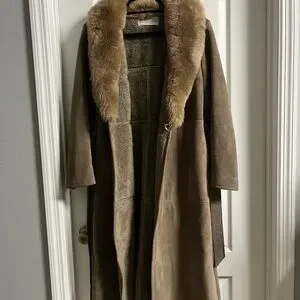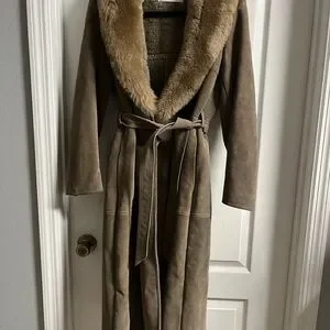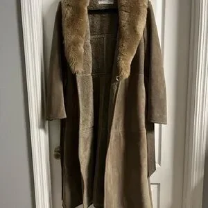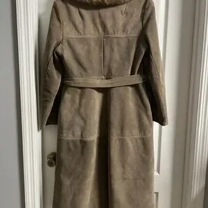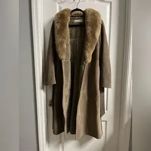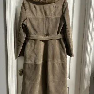 Women's Vintage Suede Fur Lined Brown Fur Collar Coat