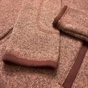 Made from warm, soft, midweight 100% recycled polyester knit fleece dyed with a low-impact process that reduces the use of dyestuffs, energy and water compared to conventional heather dyeing methods.