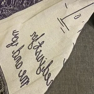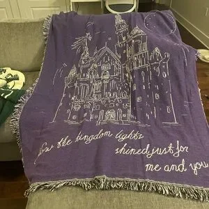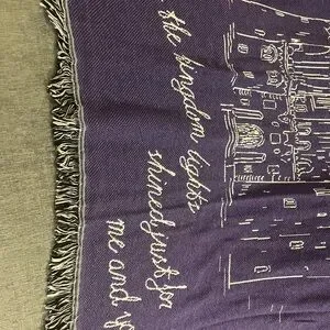 Adorable purple and white blanket with “how the kingdom lights shined just for me and you.” Brand new only opened for photos. Sold out online. Beautiful blanket—would keep it if I hadn’t gone way overboard for Swiftmas! 63" x 51.5" measurements.