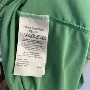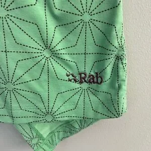 This excellent condition, like new no flaws Rab Trance Tank in green and purple geometric is a stylish and versatile activewear top for women, designed for a size 10 fit. Made from a blended fabric of polyester and elastane, this pullover tank features a sleeveless design with a racerback strap, offering medium support and a lightweight feel. The tank is perfect for various activities like gym training, tennis, or running, and its preppy style with a hint of athleisure makes it suitable for both casual and activewear occasions. Machine washable and with built-in bra support, this tank from RAB is a practical and fashionable choice for active women.