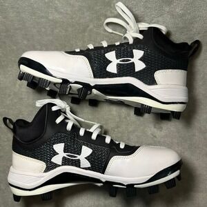 NEW Under Armour Mid TPU Baseball Cleats Men Size 6.5 Black White 1278738-011