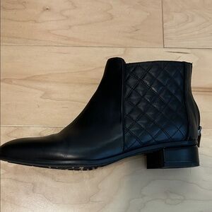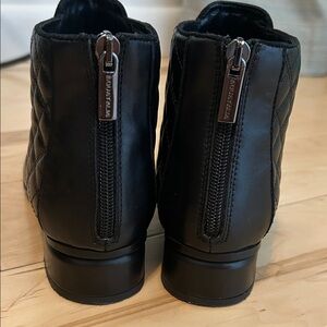 Chic black ankle boots with quilted design. Sleek and versatile style. EUC.
