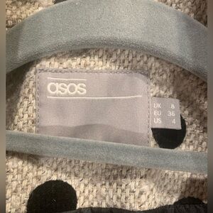 ASOS Polka Dot Coat Size 4. This jacket is pretty warm and cozy, but tailored to look sharp. A playful and preppy vibe. Two front pockets. Snap closure. Excellent condition. A unique and rare find.
