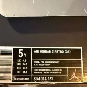 Brand new Air Jordan Retro 3 size 5 (never worn)