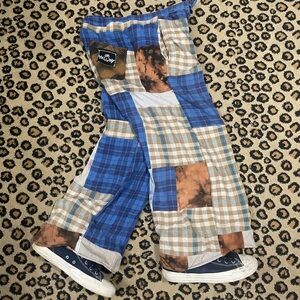 Custom made pajama pants. 36-40+ drawstring waist 29-30 length. T shirt material and old pajama pants. Extra loose and swishy. Very lightweight thin material. Learning to sew so they are not perfect there are flaws. Don’t hesitate to ask any questions. Everything is obo bundle and save