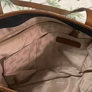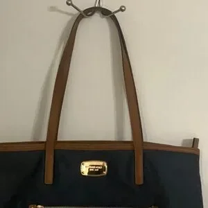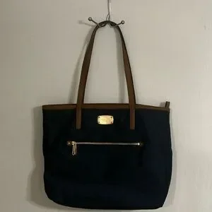 Michael Kors Navy Nylon Brown Leather Straps Tote Bag