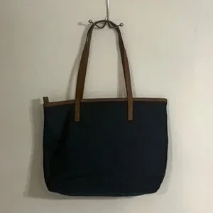 Good Condition Michael Kors Nylon Navy Tote Bag Leather Straps Zipper Closure Outside and Inside Four Pockets Inside 16” Wide 13” Height. Pre-Owned