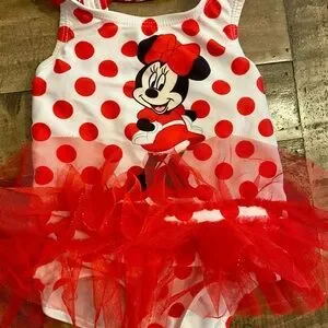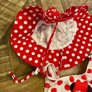Disney Minnie Mouse red polka dot swimsuit and hat size 12 months