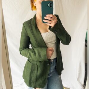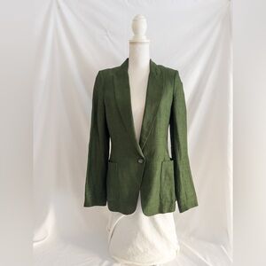 ZARA Woman Green Linen Blazer XS – Tailored Single Button Lightweight Jacket