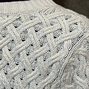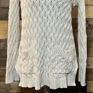 Jeanne Pierre Womens Tan Cable Knit Sweater with Pockets Size Small