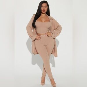 Fashion Nova Tan Long Ribbed Cardigan w/ matching spaghetti strap crop top Large