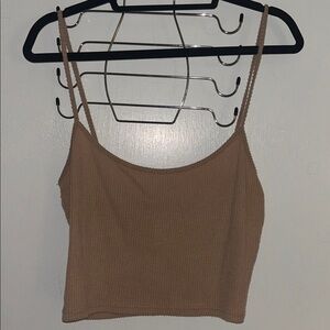 Beautiful collared tan ribbed long cardigan With spaghetti strap cropped top as a bonus!