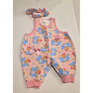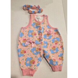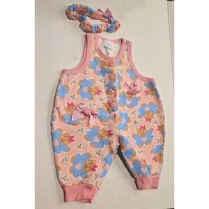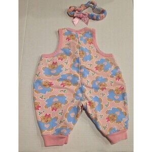 Vintage 1990s Baby Romper with Headband, Pink with Teddy Bears 6-9 Months