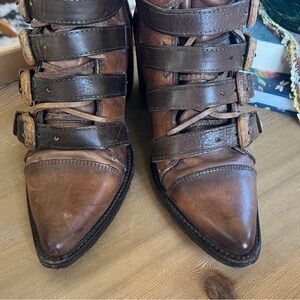 Freebird by Steven Stoke Tan Brown Distressed Leather Buckle Boots 8