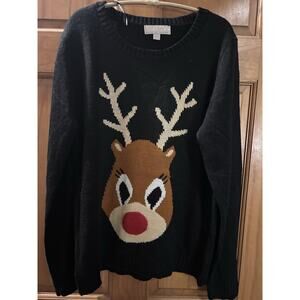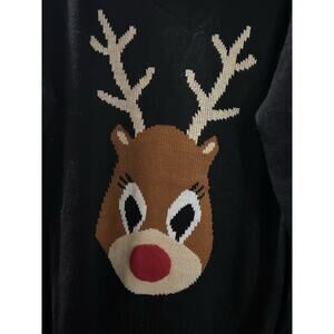 Vtg Carolyn Taylor Womens Christmas Sweater Size L Reindeer Face Black Rudolph