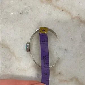 Elegant silver bracelet featuring a striking turquoise stone. Perfect for adding a touch of color to any outfit.