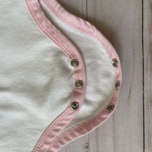 • Adorable Nannette baby set: cream bodysuit with pink trim and embroidered flower + matching pink pants with floral embroidery and sweet bows at cuffs
