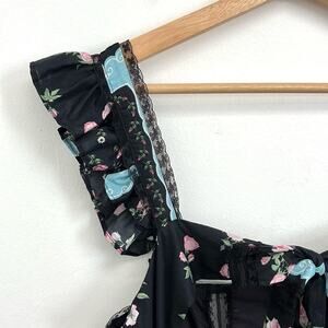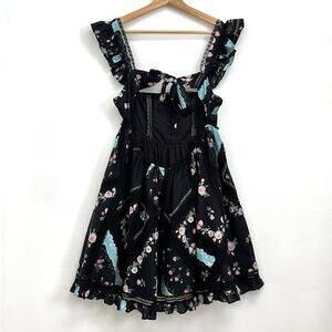 For Love & Lemons Leanne Lace Ruffles Open Back Babydoll Mini Dress - Small
